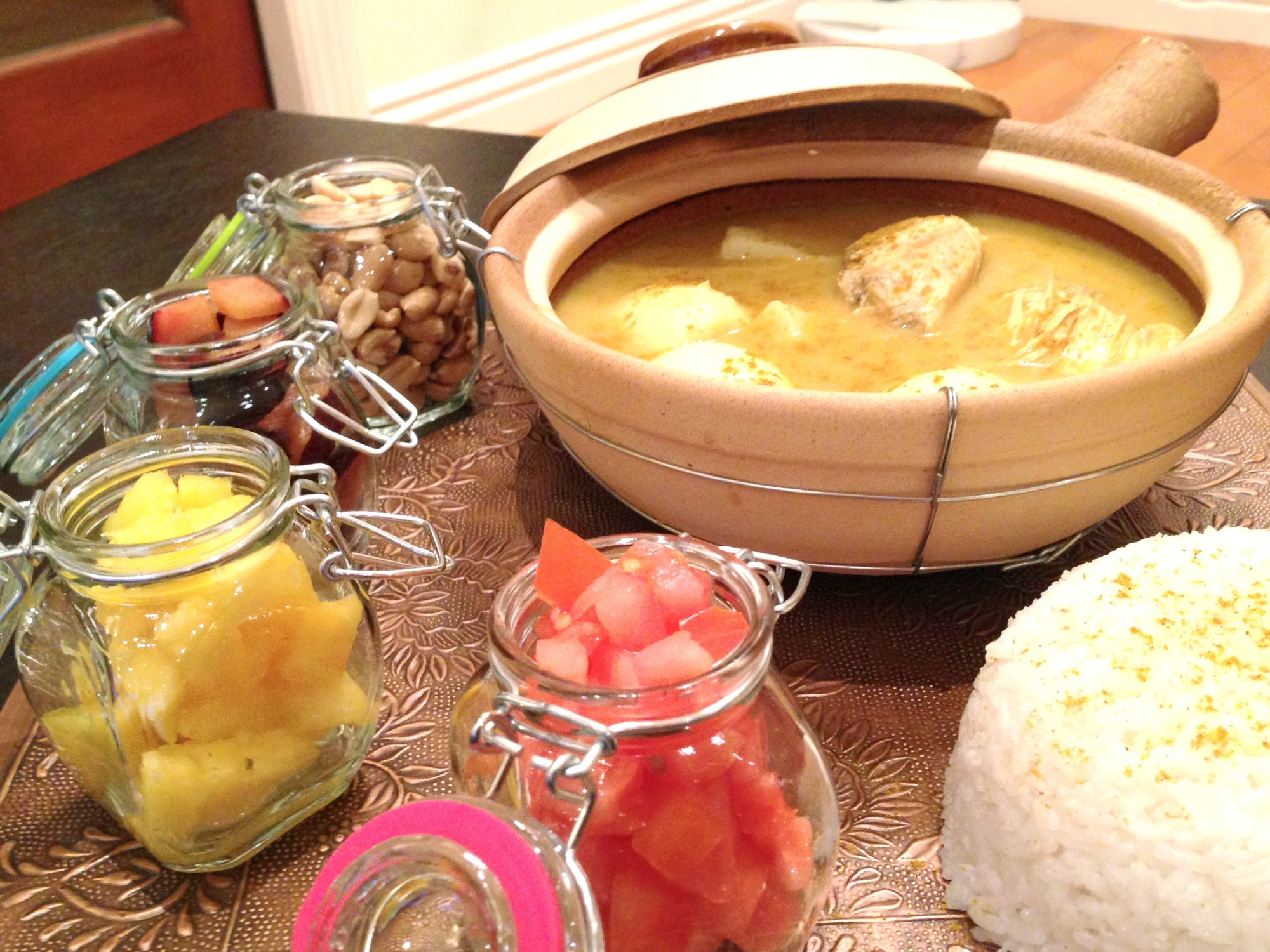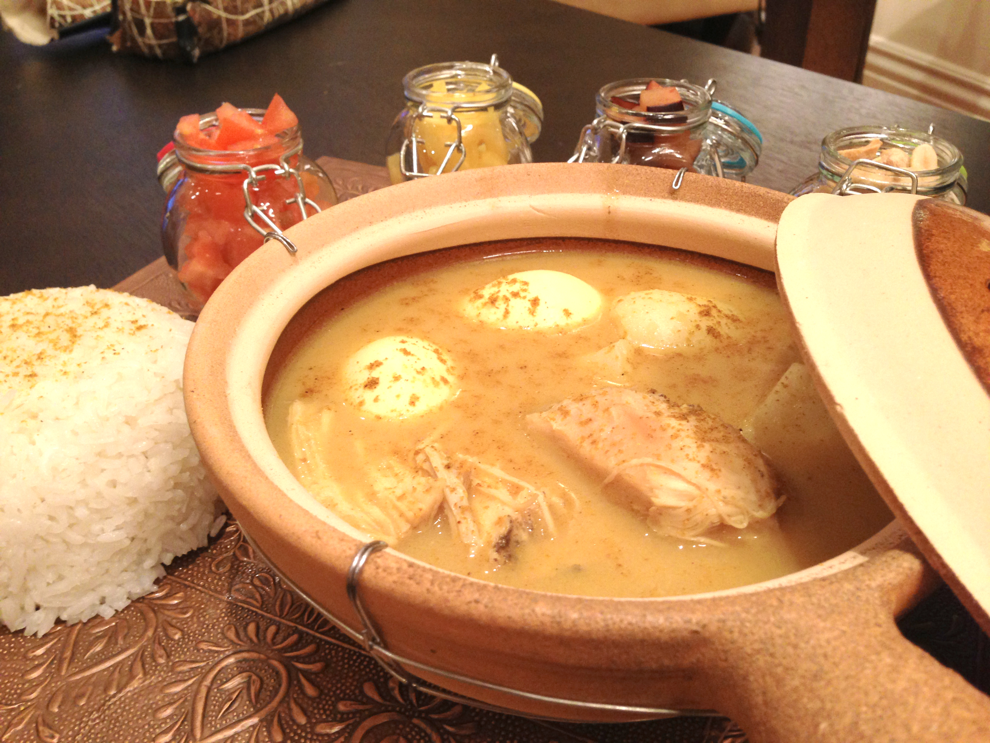 - Add eggs, potatoes and chicken breast to curry and let boil for 2 minutes.