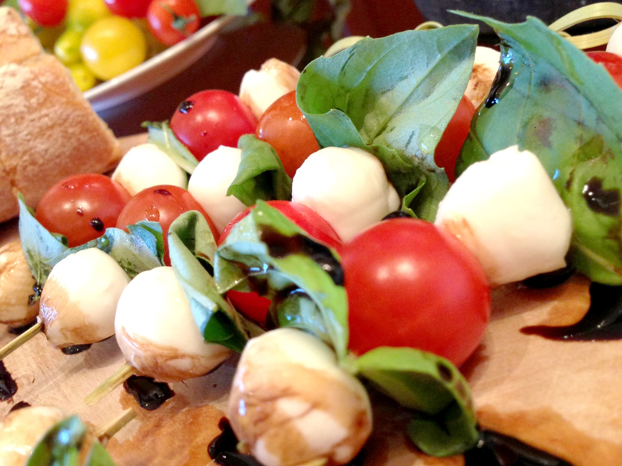 There are fewer combinations better than fresh mozzarella, ripe tomatoes & garden-picked basil. Topped off with a thick, tangy balsamic vinaigrette—caprese salad rarely ever disappoints. Choose to pre-make you kabobs for guests, or consider a Do It Yourself (DIY) station where guests may put their own kabobs together—either way it is sure to be a popular choice with your loved ones.