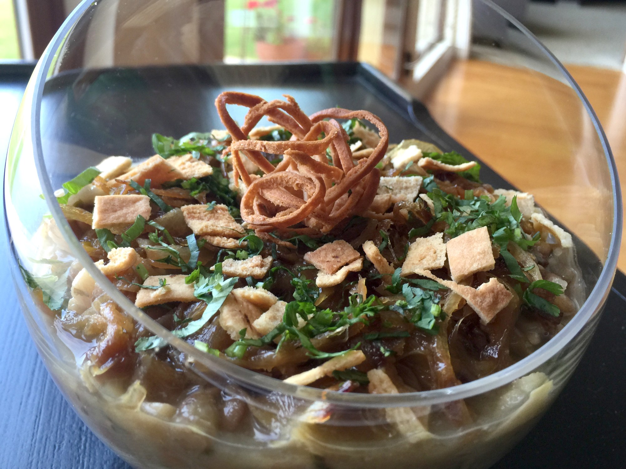 - Serve as pictured at room temperature, and garnish with caramelized onions, crisp pita, and any fresh cilantro you may have left over.
