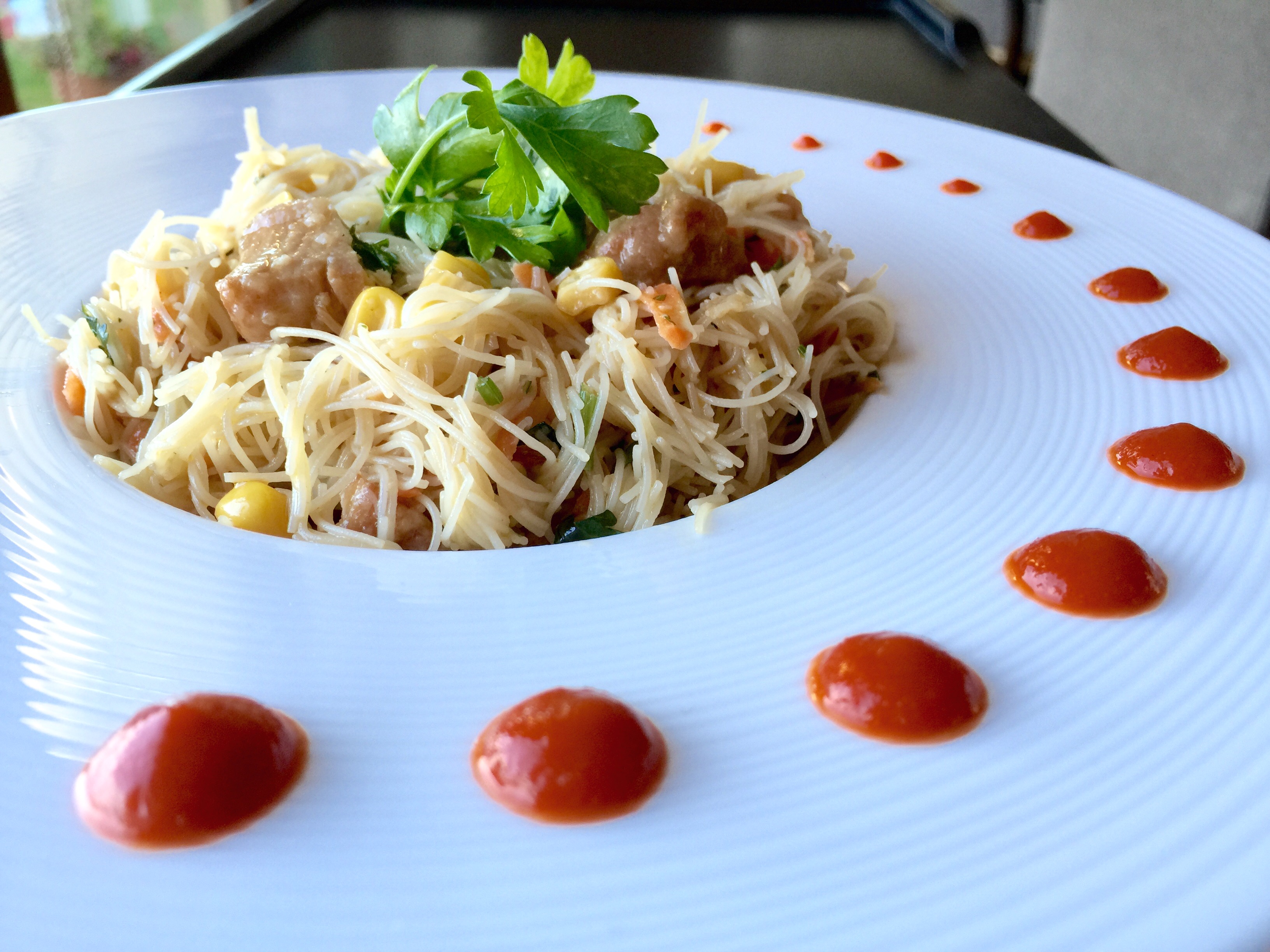 Naturally dairy and gluten free, these rice noodles are wonderful as a meal on its own, or served alongside a main course. Prepare without chicken for a lovely vegetarian or vegan option. The crunch of the carrots and corn balance out the zing of the cilantro and ginger all while paired in perfect harmony with thin brown rice noodles.