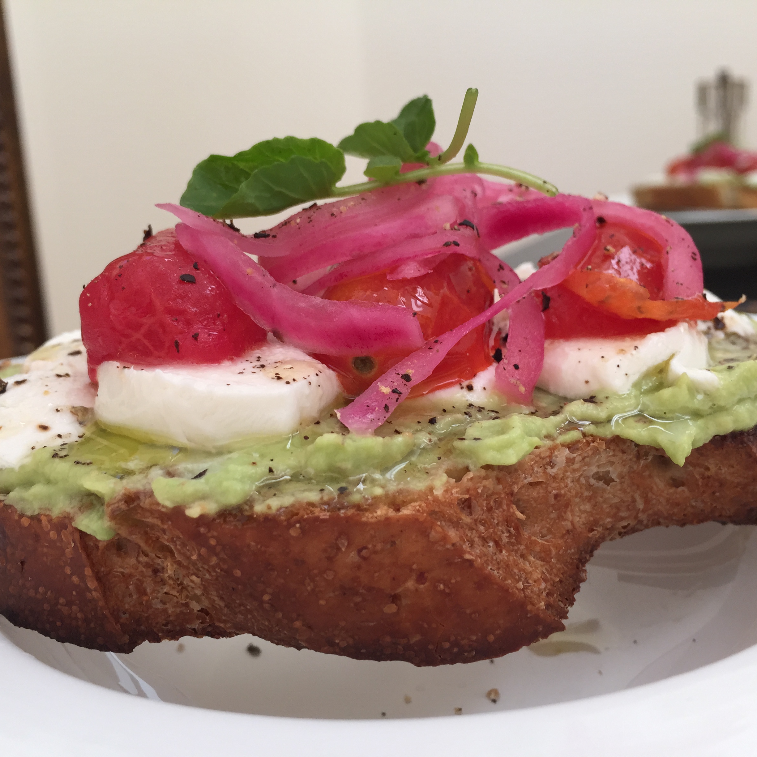 - Divide the avocado mixture among the slices of toast. Top with burrata.